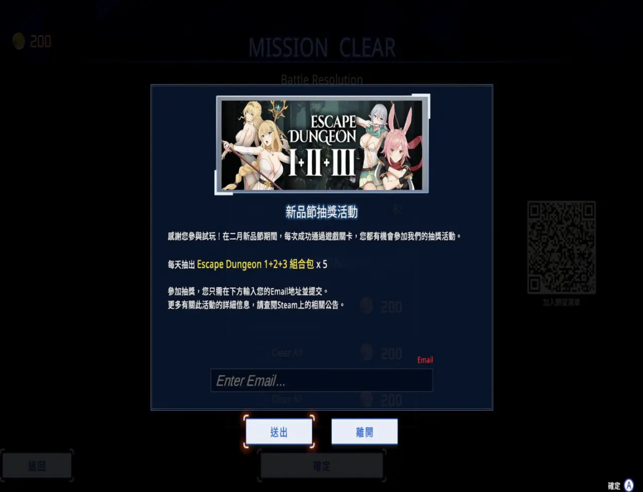 同时为了回馈《Hide Games》的支持者,新品节期间只要有进行游戏的试玩,即可在通关后输入信箱参加《地牢脱出系列》1+2+3 全套序号的抽奖喔!