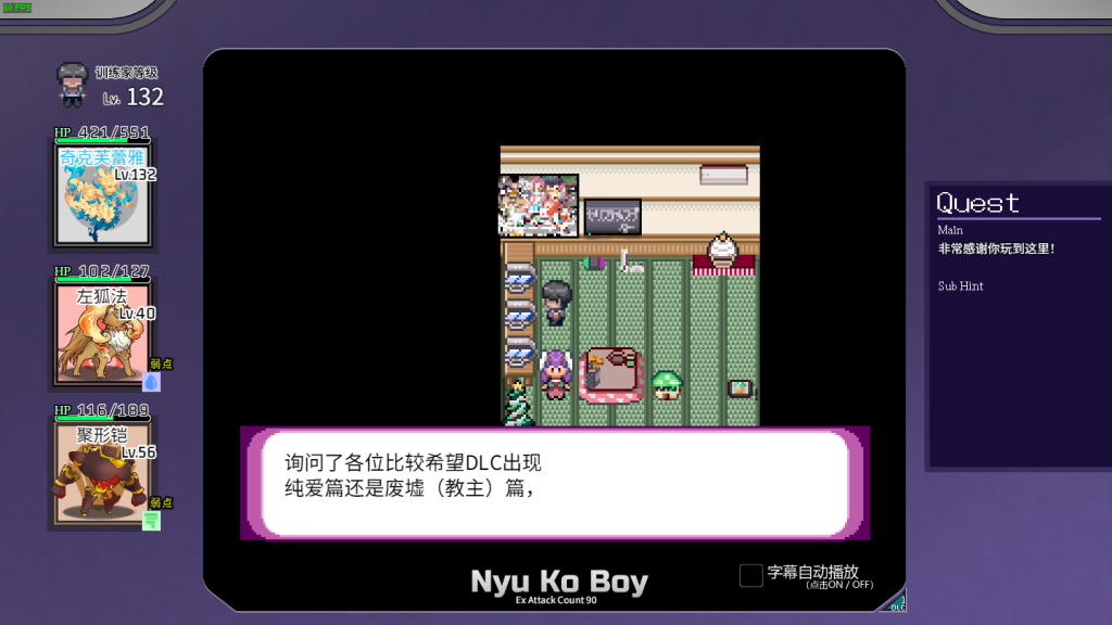 本体难度其实挺低的。扛过大城市进入自由探索阶段之后,只要仔细探图,一直打到结局前都能靠等级压制莽过去。我出新手村在用的配队就一直被我用到了结局。打到DLC1前训练师等级也有100~110,对付本体的敌人是完全足够的。