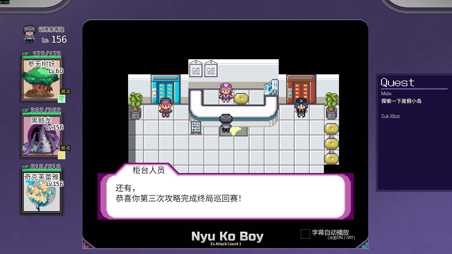 这个档确实花了比较长的时间才打完。重新从零开始打全收集档也比我最开始预想的要折磨不少。当然最让我感到折磨的果然还是做终局巡回赛的成就。3*25也就是75次战斗要远比想象中的无聊。我中间一度想放弃刷这个成就,直接把存档发上来。但最后在强迫症的心理下还是乖乖把它刷完了。