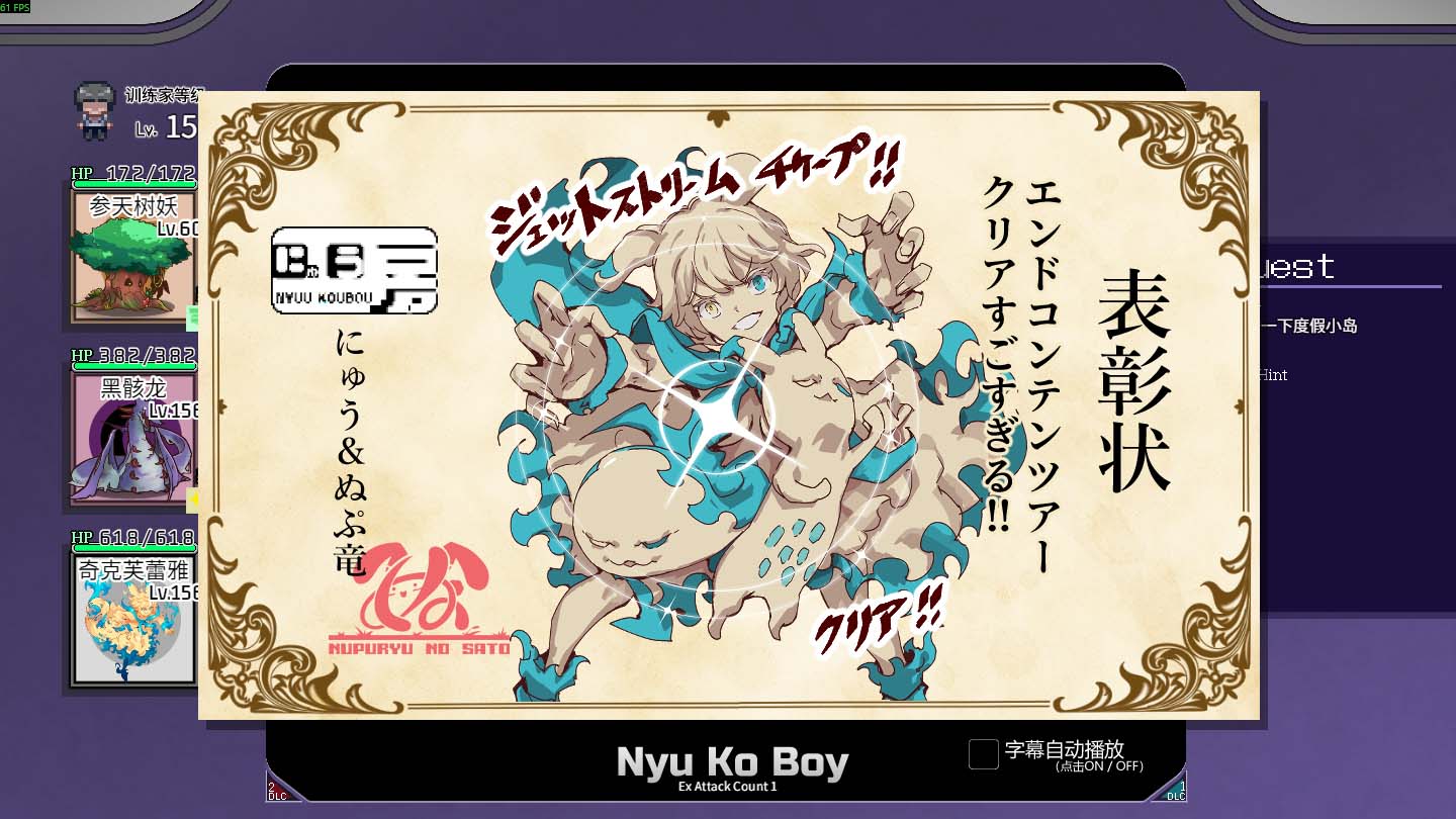 也是很艰难的通关了终局巡回赛,花了一个月的时间断断续续的打完了这75场战斗。和之前的《YARISUTEMESUBUTA ~ 一次性交易大师 ~》全CG存档 相比 ,这个档的进度如下: