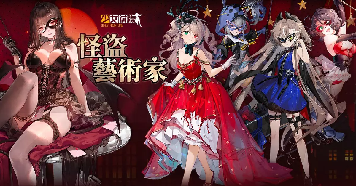 在月光的结界下,表演开始。此次推出「怪盗艺术家」主题装扮,共包含「DSR-50-天鹅绒魅影」、「Zip.22-怦怦夜色」、「德利尔-月下魔术师」、「SSG3000-圣少女的祈礼」、「P2000-甜心捕手」、「SIG MCX-黑暗封印」等六位人形的装扮。今晚要偷的是,你-的-心!